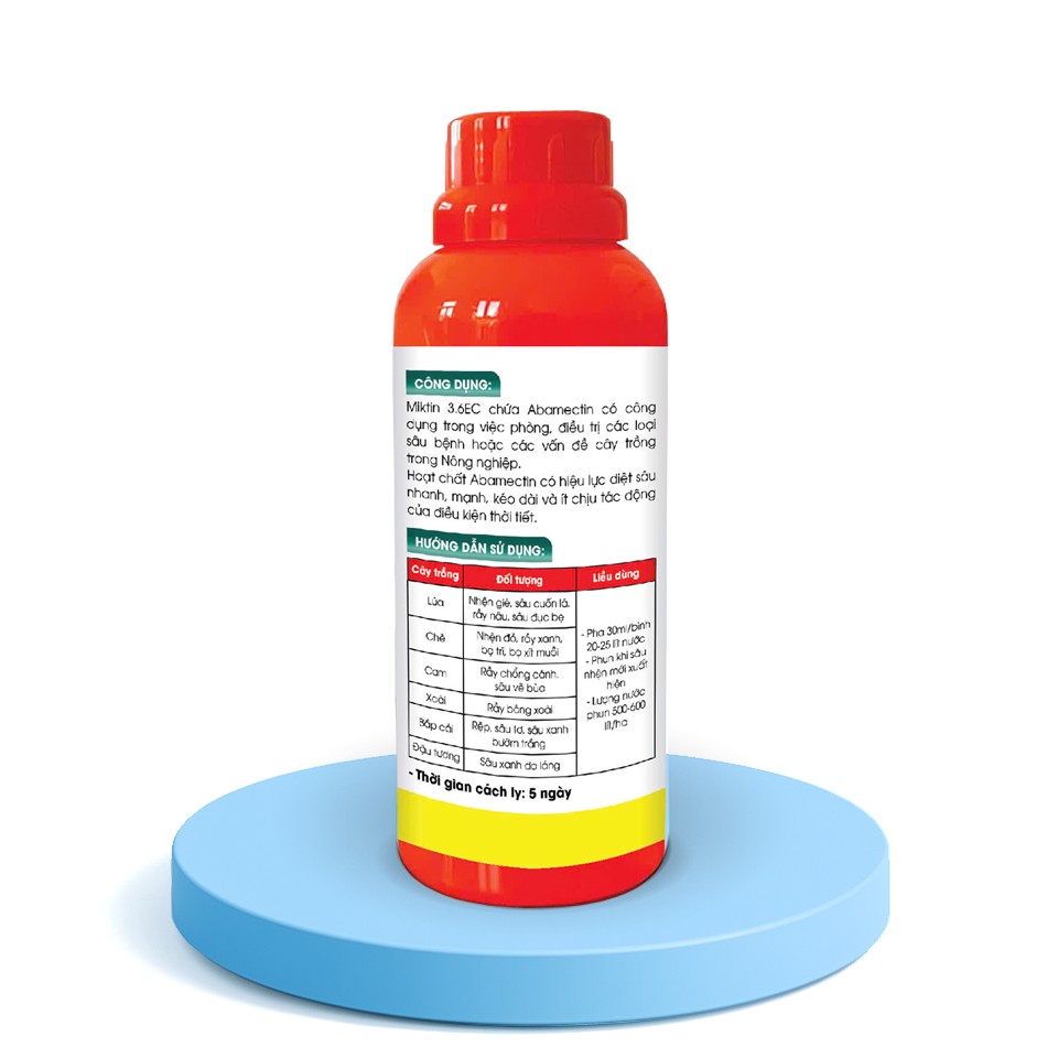 Miktin 3.6EC chứa Abamectin có công dụng trong việc phòng, điều trị các loại sâu bệnh hoặc các vấn đề cây trồng trong Nông nghiệp.